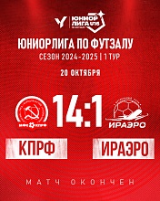 В своем стартовом матче Всероссийского турнира «Юниорлига U-16» «Арсенал-КПРФ, представляющий в турнире КПРФ, на своей площадке разгромил ИрАэро – 14-1!