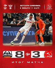 МФК КПРФ уступает 3-8 и теряет первую строчку в регулярном чемпионате Бетсити Суперлиги.
