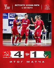 Голы: 1-0 Безруков (Баталья), 2-0 Баталья (Ильин), 3-0 Гребенщиков (в свои ворота), 3-1 Оппер, 4-1 Бурков