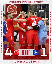 Во второй половине МФК КПРФ не дал сопернику шанса приблизиться в счете. А окончательный результат установил Шимбинья, забивший свой тридцатый мяч в текущем чемпионате PARIСуперлиге. 4-1, молодцы!