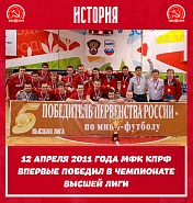 Для нашего Спортивного клуба эта дата – особенная. В 2011-м году МФК КПРФ впервые победил в чемпионате Высшей лиги! С тех пор наш клуб добился многого: в 2019-м и 2022-м мы стали вице-чемпионами России, в 2020-м - чемпионами, а вскоре взяли бронзовые награды Лиги чемпионов.